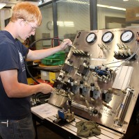 With some of the largest heavy equipment companies in Oregon on board, hundreds of high school students from throughout the region participated in Diesel Day at the Rock Creek Campus on Friday, May 3. The 12th Annual Diesel Day, hosted by the Diesel Service Technology Program, introduced these students to electronic engine programming, hydraulic circuits, fuel injector testing and electrical component troubleshooting. In addition, there valve cover racing competitions where the small cars were made from a valve cover from an internal combustion car engine. Students got to talk with local diesel employers about their respective industries and current employment opportunities. Employers included Ag West, TEC Equipment, Northside Ford, Metro New Holland, Cummis NW, US Army National Guard, Forklift Service of Oregon, DSU Peterbilt, Peterson Caterpillar and Anderson Brothers Inc.
