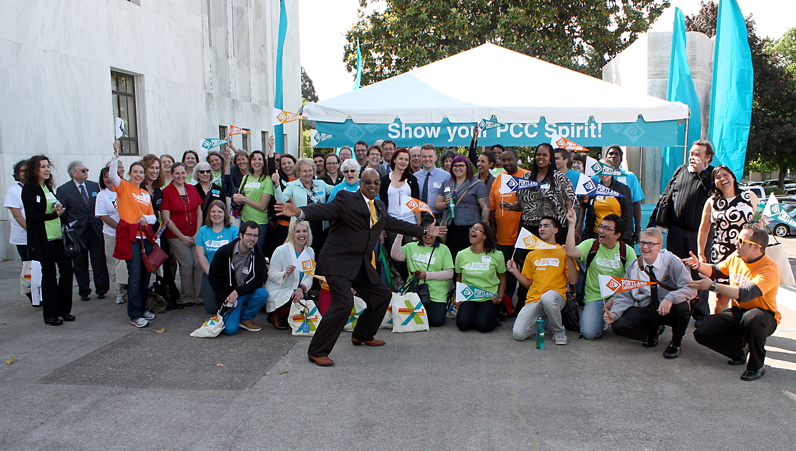 Today, students, staff and faculty are encouraged to wear PCC t-shirts, buttons, pins, hats, socks, earrings, tattoos, and Diamond paraphernalia to show their pride. To share your support, take photos of yourself decked out in spirit gear and upload the pics to the story wall on the the Opportunity website. Plus, visit any PCC Bookstore today, and participants will be entered in a drawing for a big giveaway. And anyone who simply visits a PCC Bookstore, and is wearing PCC gear, will receive a cool prize, too. You really can’t go wrong. Below, check out live updates of what’s going on around PCC.