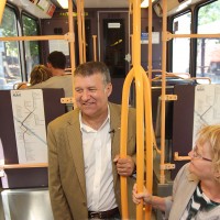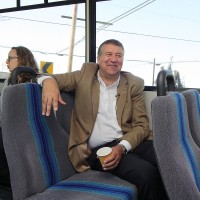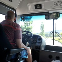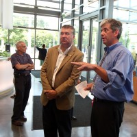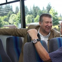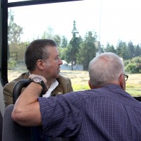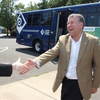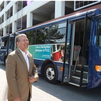 Hi Kyle, thanks for the comment. All of the PCC Shuttles run on Bio Diesel so it was a very green transportation for Dr. Brown. Having him and his tour group (which consisted of 10-15 people getting on and off at each location, not five) broken up in about 5-6 hybrids would have been a bit of a dilemma logistically and probably wouldn’t have been a much greener commute. Plus, the larger shuttle provided space for him to chat with various staff about each campus, allowed our video production staff to store their equipment and have access to him during the journey for footage and interviews. In addition, it provided us free wi-fi to blog and take notes. For his first day, the bio-diesel shuttle was just the best option.