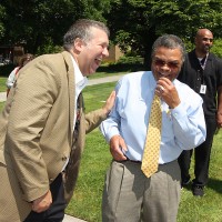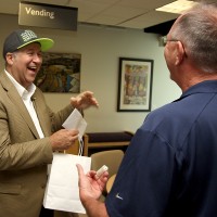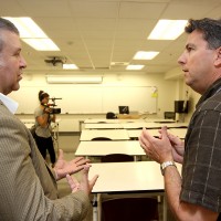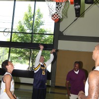 On the July 1 bus tour, some of the campus leadership weren’t happy to just welcome Brown to the college, but were enthusiastic to put him through challenges. At Cascade, Campus President Algie Gatewood competed against Brown in that aforementioned jump-shooting competition in the Cascade gymnasium. The two had 90 seconds to make baskets from various locations around the key. It was a best two-out-of-three competition that Brown won by a whisker in front of a big and energetic crowd.