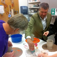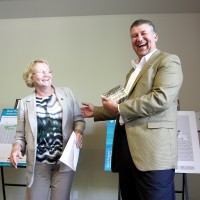 The welcoming parties at each campus were fun and full of excitement. The day kicked off with a 3-D gift handed to him by a robot at the Sylvania Campus and concluded with a variety of stress-relieving gifts at the CLIMB Center. In between, there were visits to the Newberg, Hillsboro, Willow Creek, Metro, and Downtown centers as well as stopovers to the Rock Creek, Cascade and Southeast campuses. From walking tours about the sustainability of PCC buildings to operating a Caterpillar excavator to riding Max for the first time to competing in a raucous jump-shooting competition to simply shaking hands and chatting with people, Brown got to experience the college at its finest.