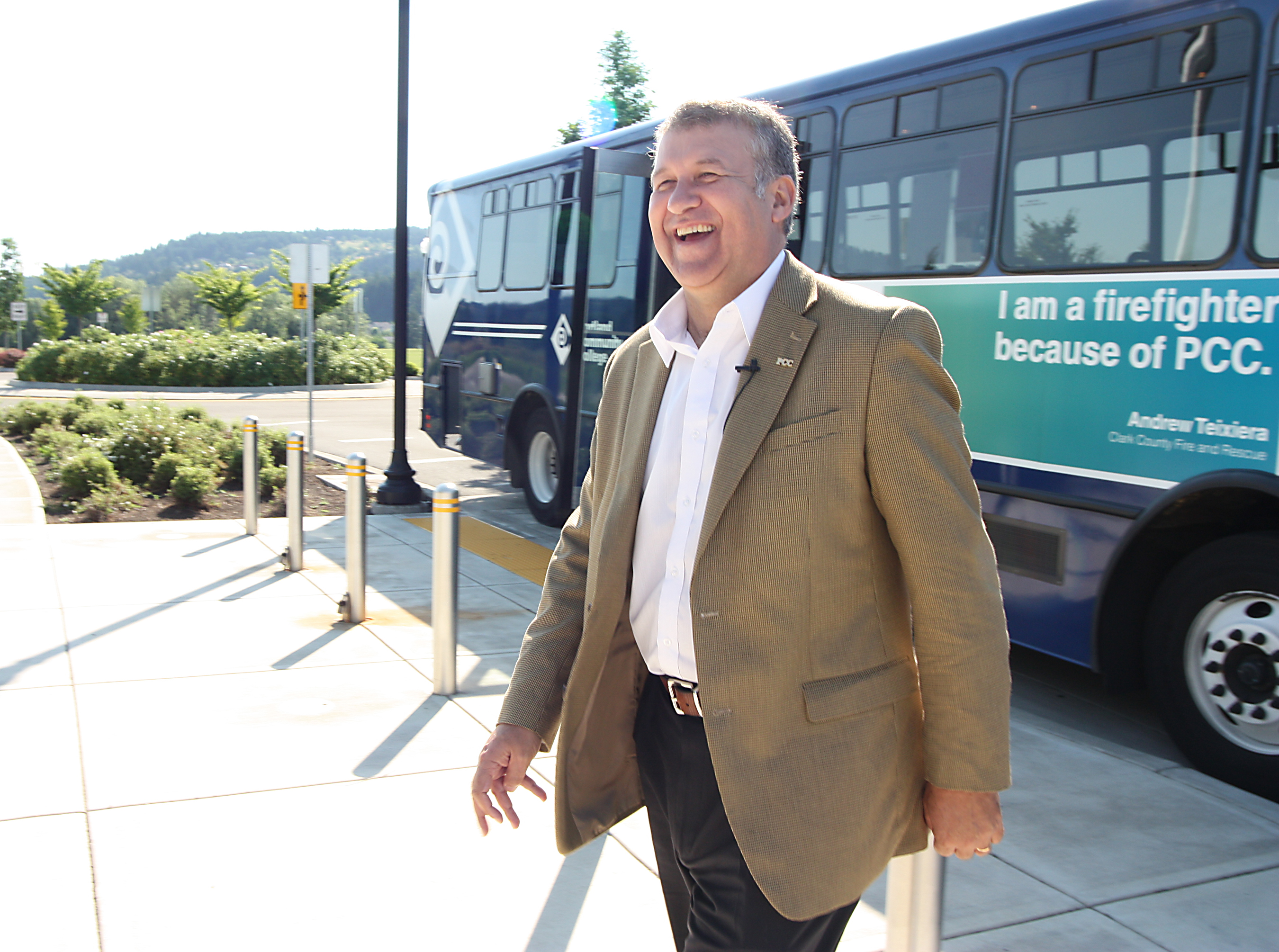 On Monday, July 1, new Portland Community College President Jeremy Brown climbed into one of PCC’s eco-friendly Bio Diesel shuttles and was whisked away on a tour of the college district. In total, Brown visited 10 locations, starting with the Sylvania Campus and later the Newberg Center and then finishing up at the Downtown and CLIMB centers. It was a way for the new PCC leader to get a feel for the college and the diversity of its campuses and centers.