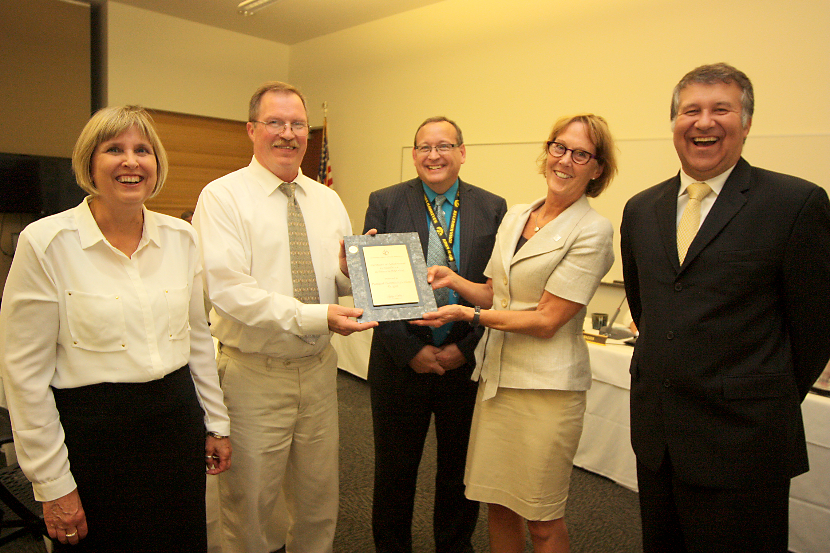 PCC is on a roll in the financial reporting game – winning a key national award for the 21st straight year. College President Jeremy Brown (far right) and Board Chair Denise Frisbee (middle right) presented the Government Finance Officers Association (GFOA) Certificate of Achievement Award to, left to right, Sally Gregory (Financial Reporting Manager), Jim Crofts (Accounting Services Manager) and Jim Langstraat (Associate VP of Finance). The award was showed off at the last board of director’s meeting Thursday, Aug. 15 at the Sylvania Campus. The Certificate of Achievement is the highest form of recognition in the area of governmental accounting and financial reporting, and its attainment represents a significant accomplishment by a government and its management. The GFOA oversees governmental reporting in the United Sates and Canada.