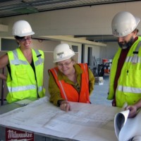 Members of the Fortis Construction team took a handful of campus stakeholders on a dusty walk-through for Building 7, as crews were installing drywall and insulation this week.
