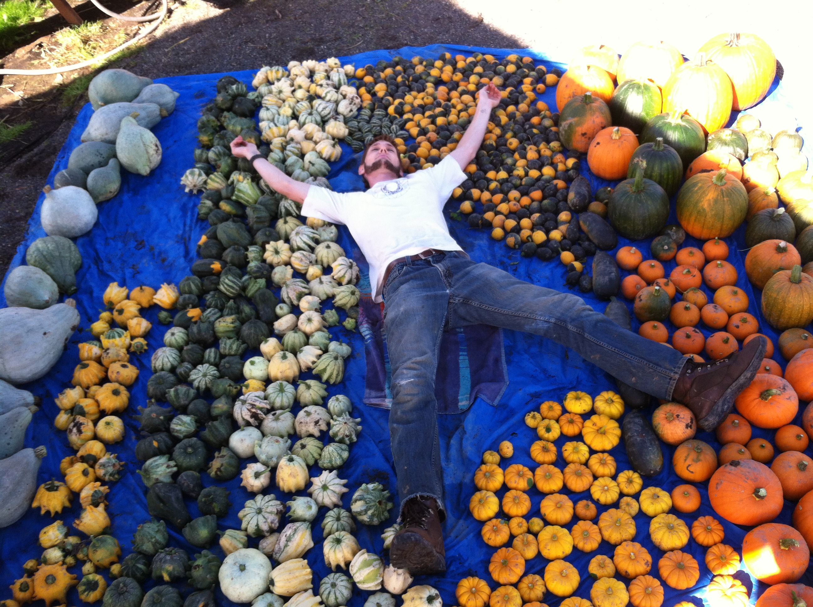 PCC’s AmeriCorps team member Jeffery Mailes shows just the fun one can have with gourds and pumpkins.