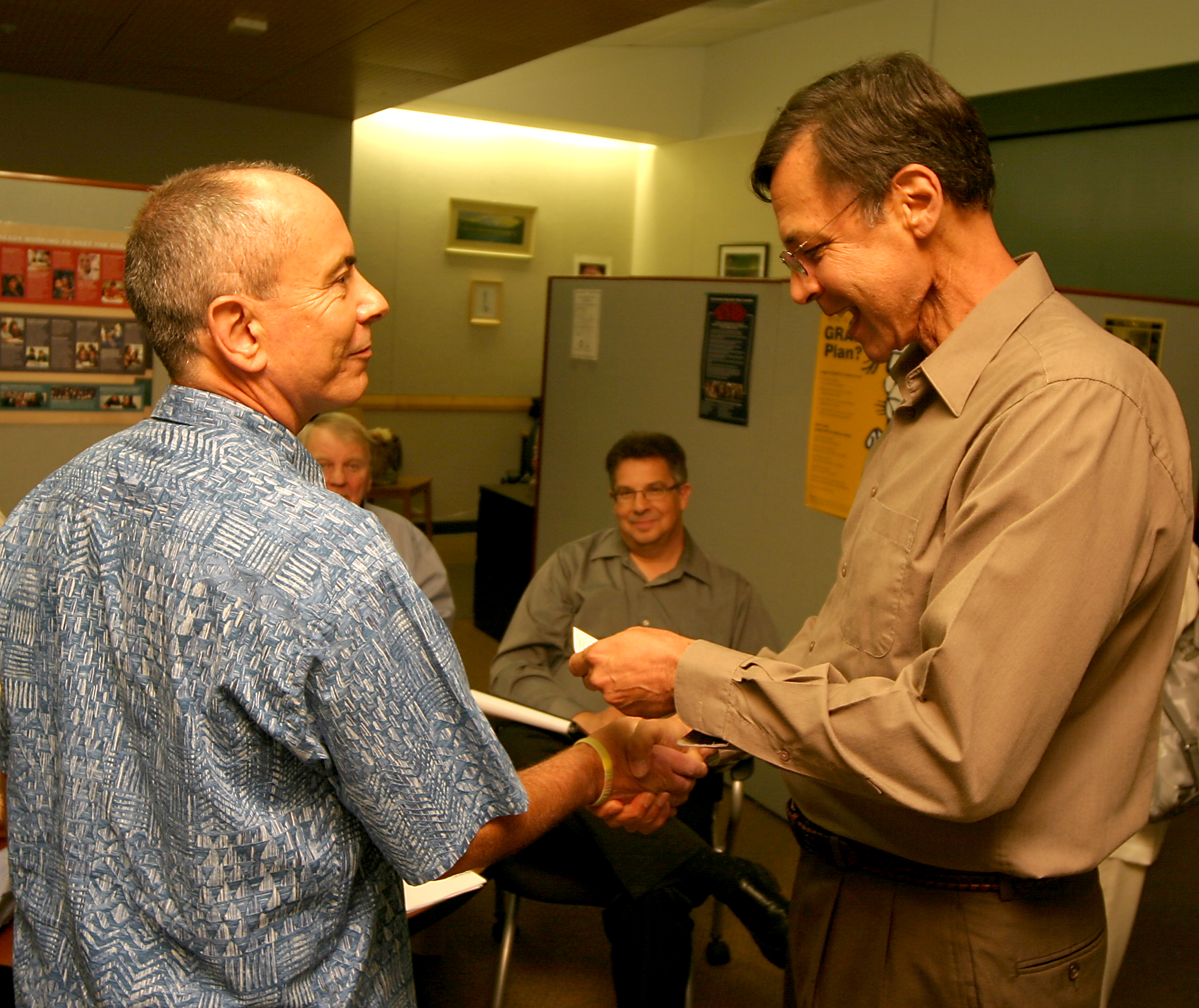 Steve Gordon (left) with Bert Logan, director of Financial Aid and Veteran Services. Gordon will serve as PCC’s Vet Success On Campus representative to assist veterans with questions they might have about benefits, enrollment, the VA Medical Center, VA guaranteed home loans, compensation and pension.