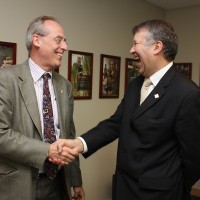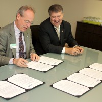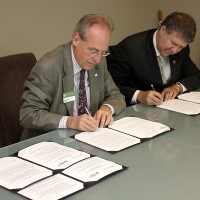 PCC President Jeremy Brown and PSU President Wim Wievel got together and re-signed an updated version of their dual admissions agreement at the university in downtown Portland. The signing capped a day of meetings that Brown and his staff had with university officials, including a guided tour of PSU. In 2000, the two schools developed a co-admission agreement to facilitate student transfers between the two institutions. Since that time, thousands of students have benefited from this collaboration. The signing recognized this partnership’s updates that have been implemented to better accommodate student and institution needs.