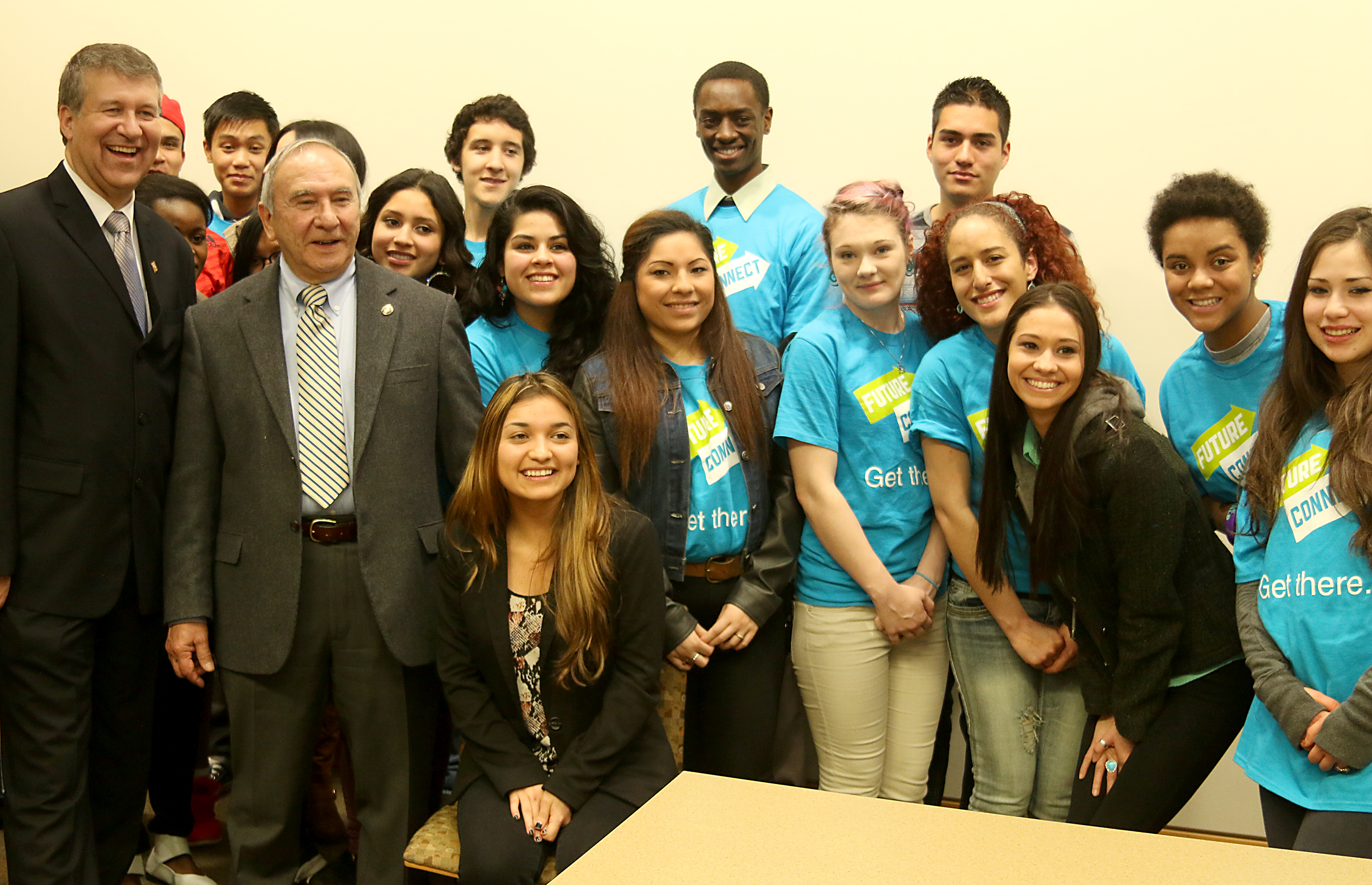 Dozens of students in the PCC Foundation’s Future Connect Program gathered around the Governor to watch him sign the bills in front of gathered media and legislators.