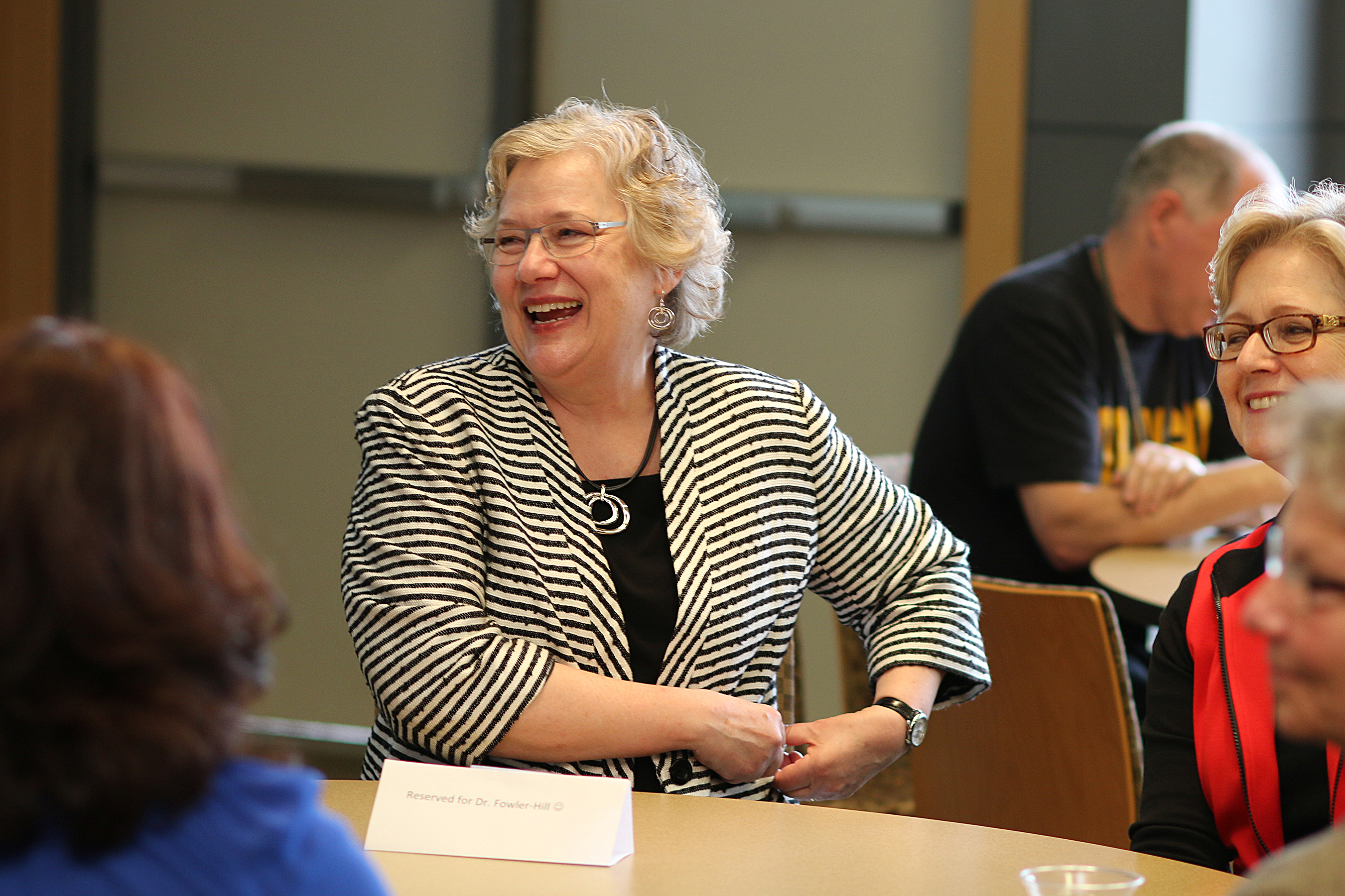 During the welcoming, various staff representing administration, faculty and classified workers spoke on behalf of their colleagues and presented Fowler-Hill with gifts.