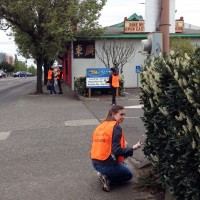The two-hour event was organized by the Jade District, a Neighborhood Prosperity Initiative (NPI) district established by the City of Portland in 2011. The NPI is a public/private partnership that aims to transform underserved commercial districts in east Portland into engines of economic growth without displacing the communities that reside there. Stanley Moy, the district manager for the Jade District, said that the group cleaned up parking lots, picked up cigarette butts and removed graffiti along business buildings, public signs and bus stops, covering ten blocks along Southeast 82nd Avenue.