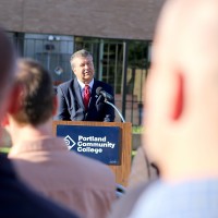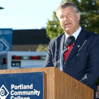 On Thursday, Sept. 11, faculty, administrators and students gathered at the Borthwick Mall on the Cascade Campus to pay respects to the fallen of the Sept. 11, 2001 terrorist attacks on the United States. Speakers included College President Jeremy Brown, who talked about the impact the day had on everyone, and Cascade Campus President Karin Edwards, who related a personal story of victims from the tragedy. A crowd of about 100 people, including Fire Science and Emergency Services students and faculty, were in attendance along with the President’s Cabinet and emergency personnel from the community. Brown also led everyone in a moment of silence after student EMTs raised the United States flag. For those who couldn’t attend the event, campuses across PCC held moments of silence at 8:57 a.m. – the time of the first plane’s impact on the World Trade Center towers in New York City.