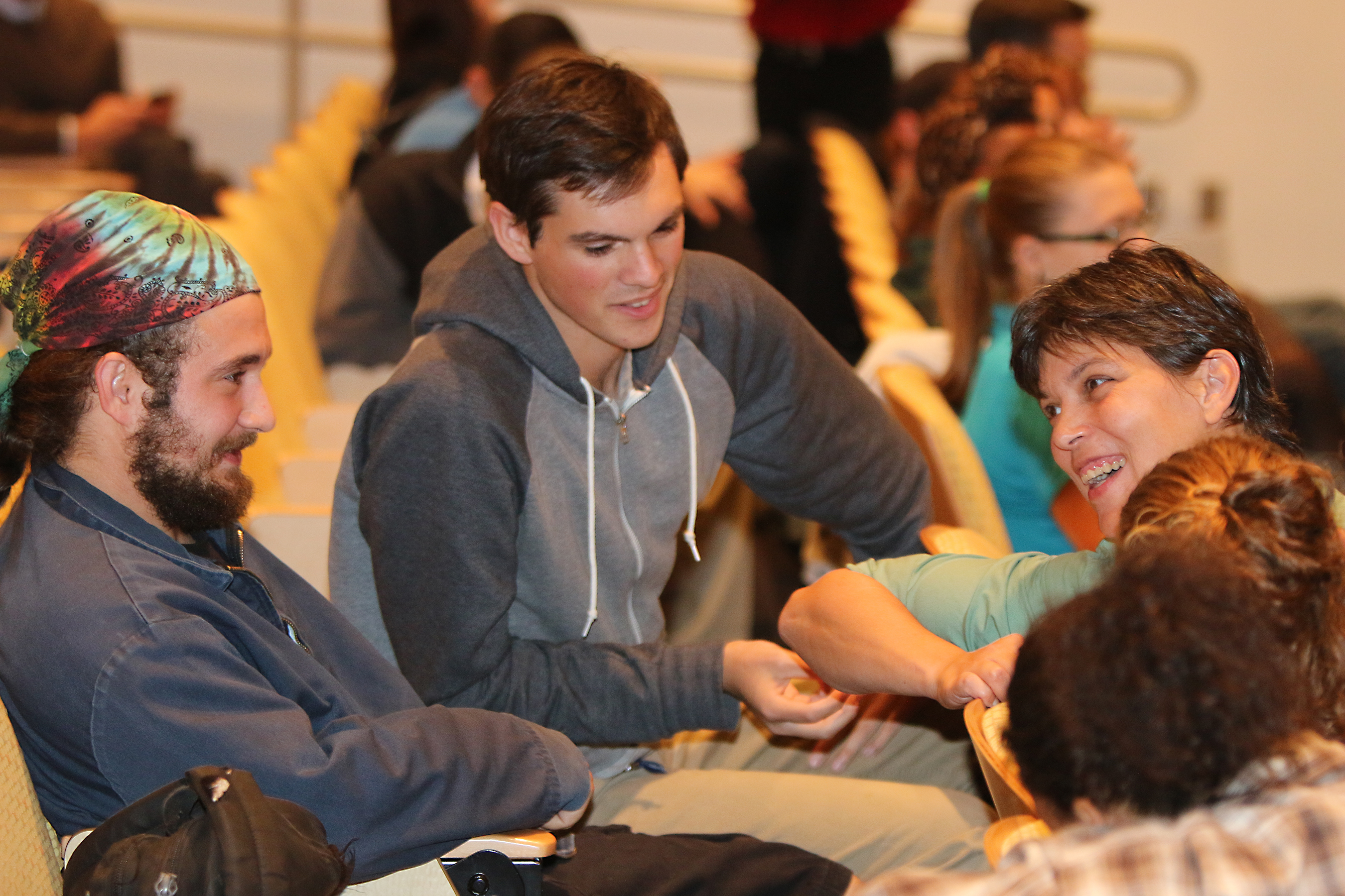 Cascade students participate in an exercise put to them by Secretary of State Kate Brown during a voter registration event in the Moriarty Arts and Humanities Auditorium. The exercise illustrated how if you don’t vote, you leave important decisions up to the few that do vote.
