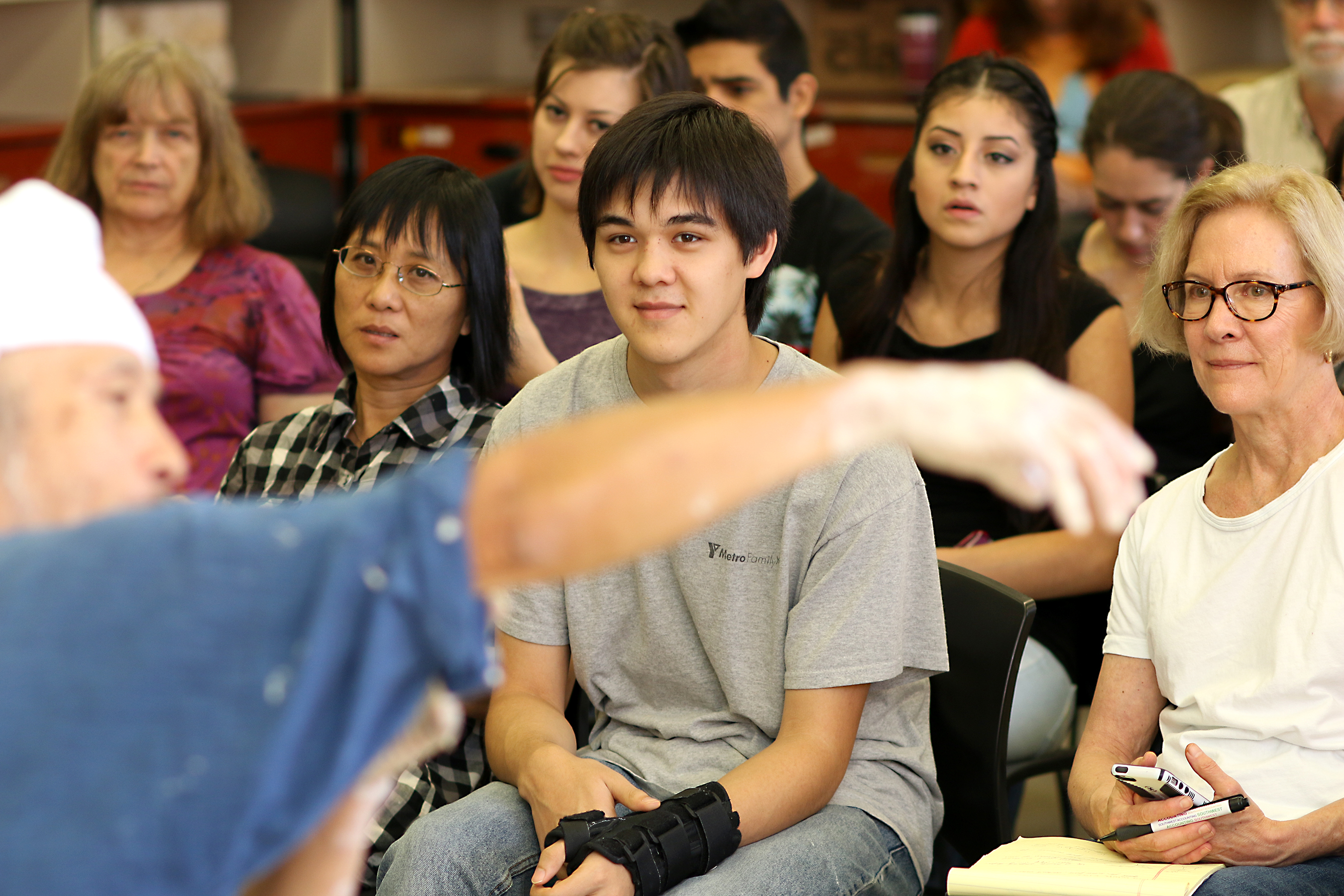 Shuichi Ogata demonstrates techniques in the Rock Creek ceramics studio.
