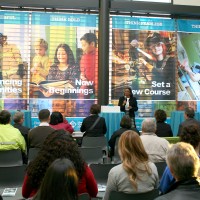 It’s a new era for Cascade Campus and Portland Community College. After years of planning and construction, the North Portland campus’ new Student Union and Cascade Hall buildings have been completed. On Jan. 20, the community and PCC celebrated the milestone with a “New Beginnings” celebration at the two buildings. Hundreds of attendees enjoyed music by The Century and various artists, time-lapse construction videos by Marc Bowen Productions, and speeches by PCC President Jeremy Brown, Cascade President Karin Edwards, State Rep. Lew Frederick, State Sen. Chip Shields, board members Kali Thorne Ladd and Deanna Palm, Humboldt Neighborhood Association Chair Paul Anthony, and student Staci White. Visitors were also treated to a Zumba flash mob, tours of the buildings, cake and a large explosion of streamers.