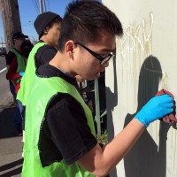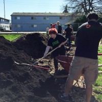 On Saturday, March 7, student leaders from the Southeast Campus worked side by side with Mayor Charlie Hales, local business owners, residents, and Jade District and APANO volunteers to beautify Southeast Portland neighborhoods. This included cleaning up surrounding business districts and building raised garden beds at the Harrison Park Community Garden. The event was organized by Trami Nguyen, who is an intern at APANO and a PCC student at Southeast. She reported that more than 80 community volunteers picked up 20 bags of trash around the neighborhood, removed graffiti from three buildings along SE 82nd Avenue, built 20 beds at the community garden and improved an outdoor table tennis play area at Harrison Park School.