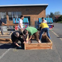 According to one student volunteer, it was fun to work with Mayor Hales on the raised beds as he is “a pretty good carpenter.”