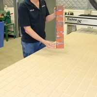 PCC Sylvania’s Machine Manufacturing Technology department ran about 20 four- by eight-foot panels using its CNC router to create and cut a pattern that resembled a brick wall. The Theatre Arts Department then painted the panels a dark reddish color, followed by rolling the surface with a rusty red paint and then a light dusting of white and gray speckles to create the production’s “brick walls.”