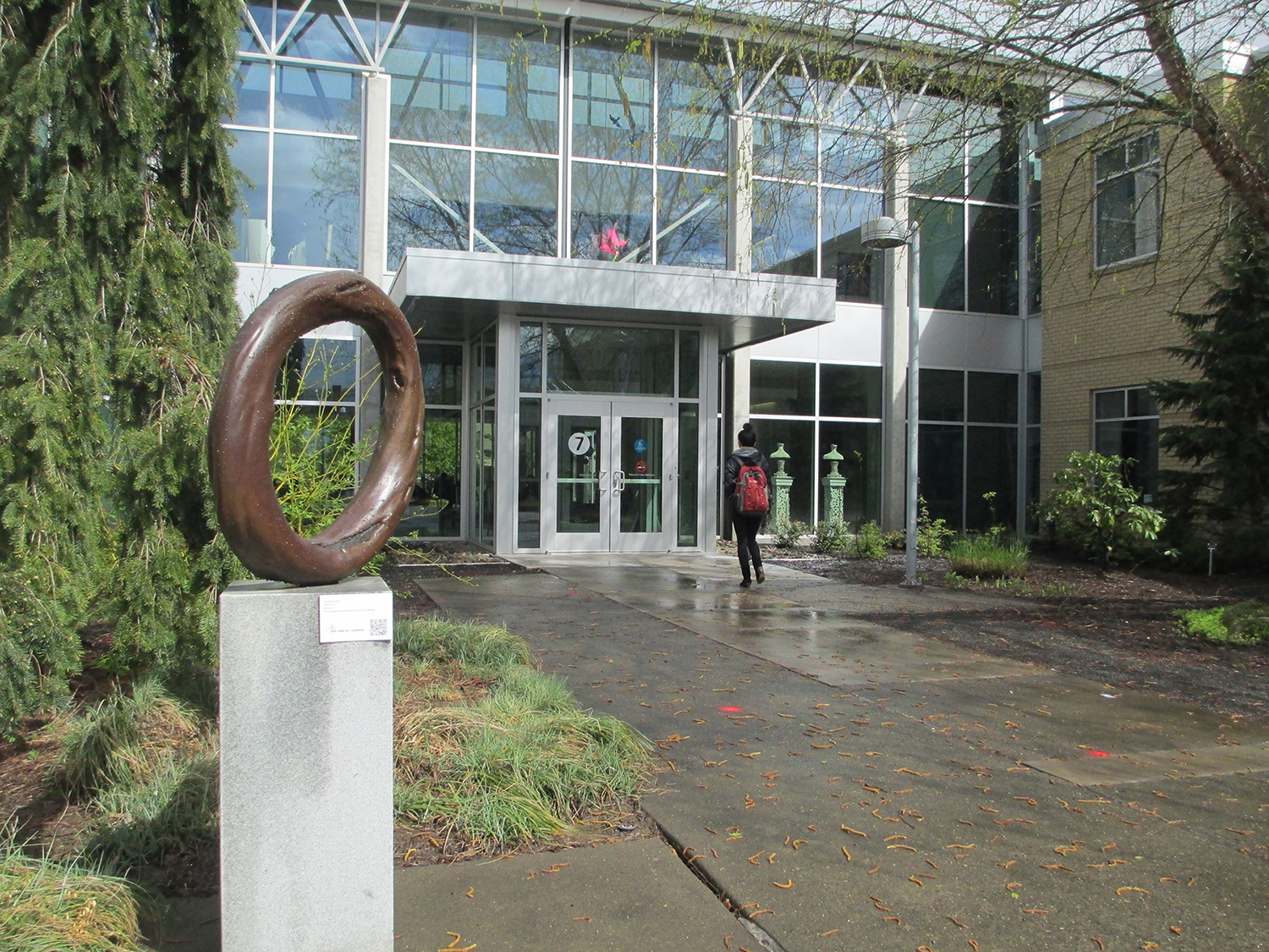 One could say that it’s like wearing an old pair of Keds with a Dior dress. By any measure, PCC Rock Creek’s remodeled Building 7 is stunning. With its clean, sharp lines and weave-patterned glass facade, the east side of the structure serves as an inviting anchor to the campus quad. But in comparison, the west side’s tired and unkempt courtyard entrance doesn’t do the building’s new addition justice.