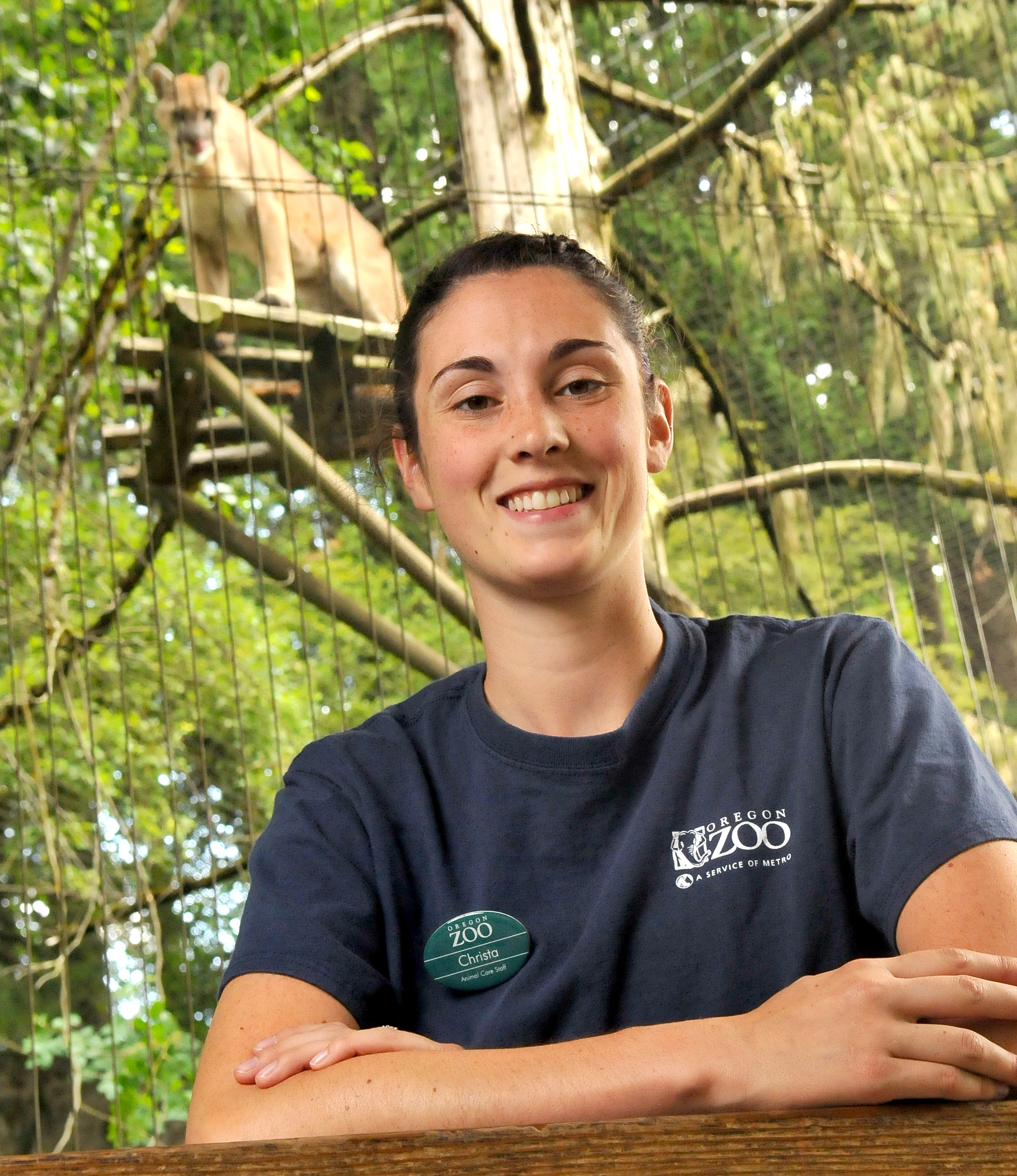 Christa Fink runs with a pretty a wild crowd. A recent graduate of Portland Community College’s Biology and Management of Zoo Animals Program (BMZA), Fink works as a zookeeper in the North American exhibit of the Oregon Zoo and spends her days kicking it with cougars, bobcats, black bears, otters—and even a mountain goat named Montane.