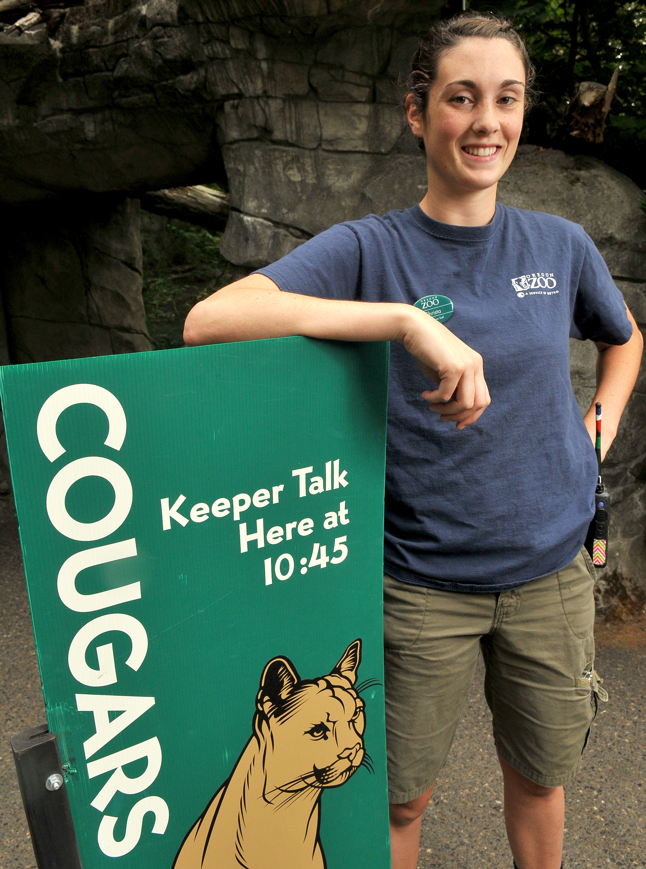 In the North American exhibit, Fink works closely with two very special members of the zoo: two cougars named Chinook and Paiute. It’s apt that a PCC Panther (the college’s official mascot) like Fink spends a fair amount of her time caring for big cats.