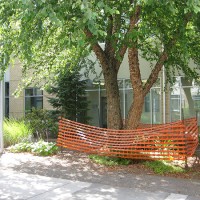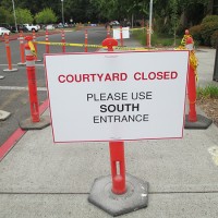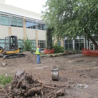 Now, with the west entrance blocked off, workers have begun the extensive upgrades, which will include soil excavation and improvement, enhanced drainage and irrigation, and a new wider, thicker concrete pathway. Care is being taken to protect the existing trees that will be retained in the redesigned courtyard.