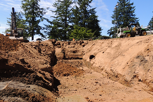 The first step in Sylvania's new detention pond at the end of Parking Lot 5 was excavation work.