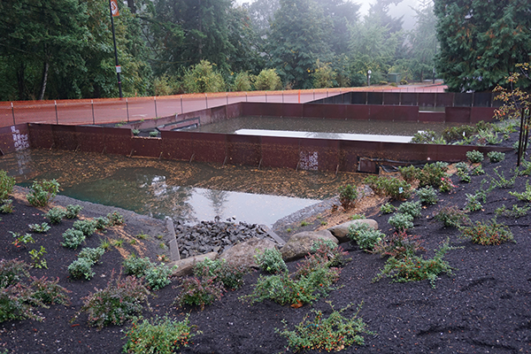 Sylvania's new detention pond captures stormwater runoff and helps prevent flooding.