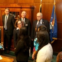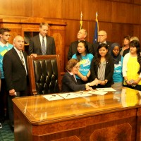 A legion of Portland Community College and Future Connect Scholarship Program supporters, including PCC Interim President Sylvia Kelley, Board Trustee Jim Harper, Sylvania President Lisa Avery and a cast of many staff and students, convened at Oregon Gov. Kate Brown’s ceremonial office in Salem’s Capitol Building on Monday, Sept. 28. Gov. Brown ceremonially signed House Bill 3063, or known as the “Aspirations to College” bill, to wild applause from the contingent who surrounded her as she signed the required paperwork.