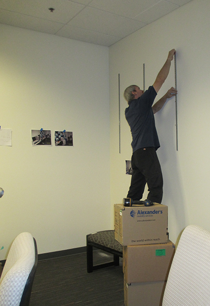 Among the final jobs was hanging shelves in newly refurbished offices.
