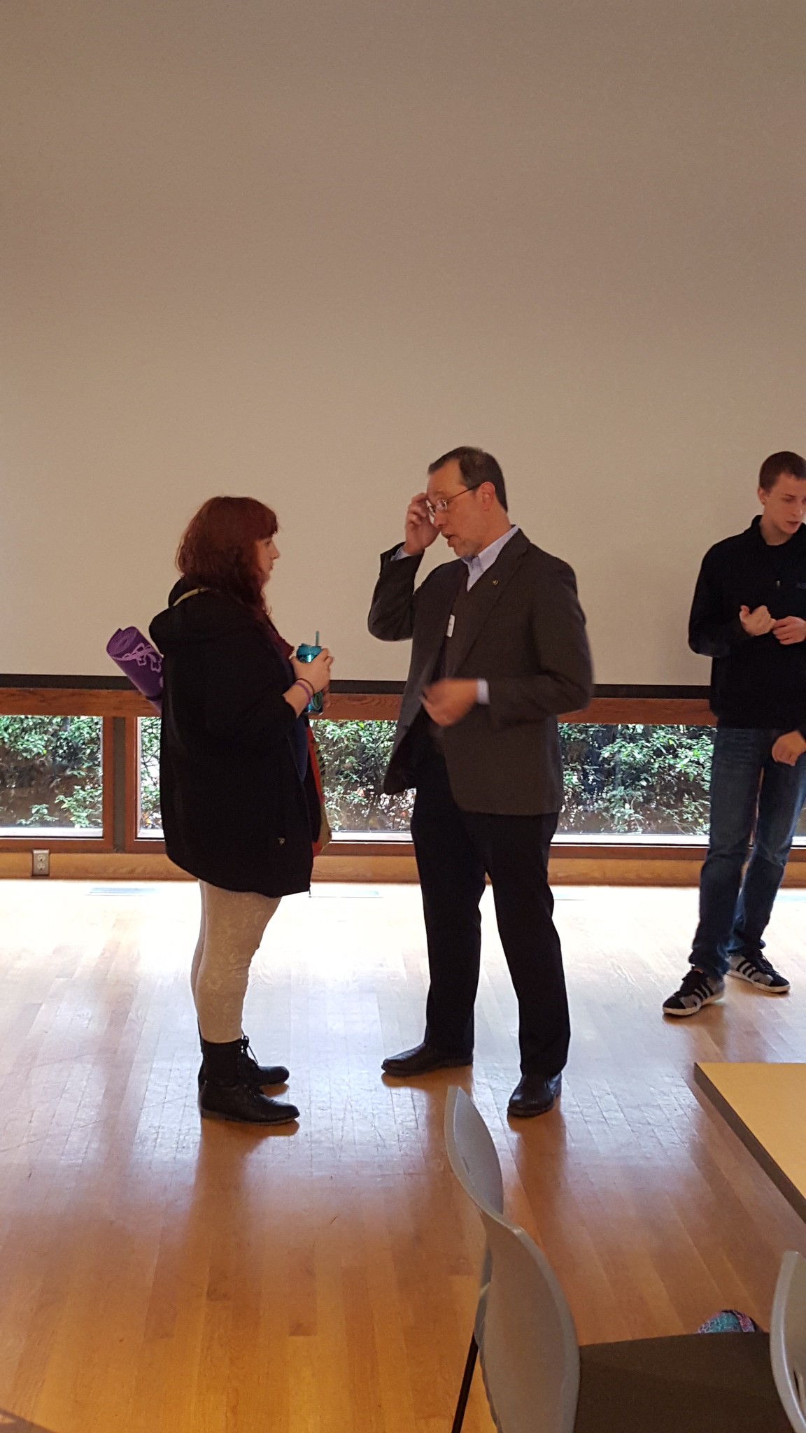 Senator Dembrow speaks with student directly.