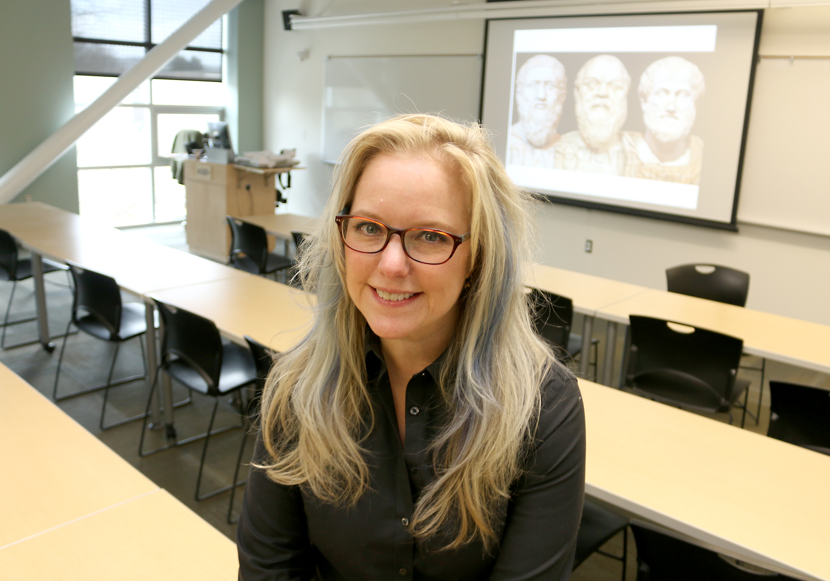 “When we moved to Portland I really didn’t have any intention necessarily of teaching, but one thing led to another, and I picked up one class at the college and just loved it,” she continued. “I absolutely adore teaching and talking about Plato, Buddha; that’s where the really fun stuff is. I love getting into the nitty-gritty of philosophy and seeing it just change lives. That’s the really cool stuff.”