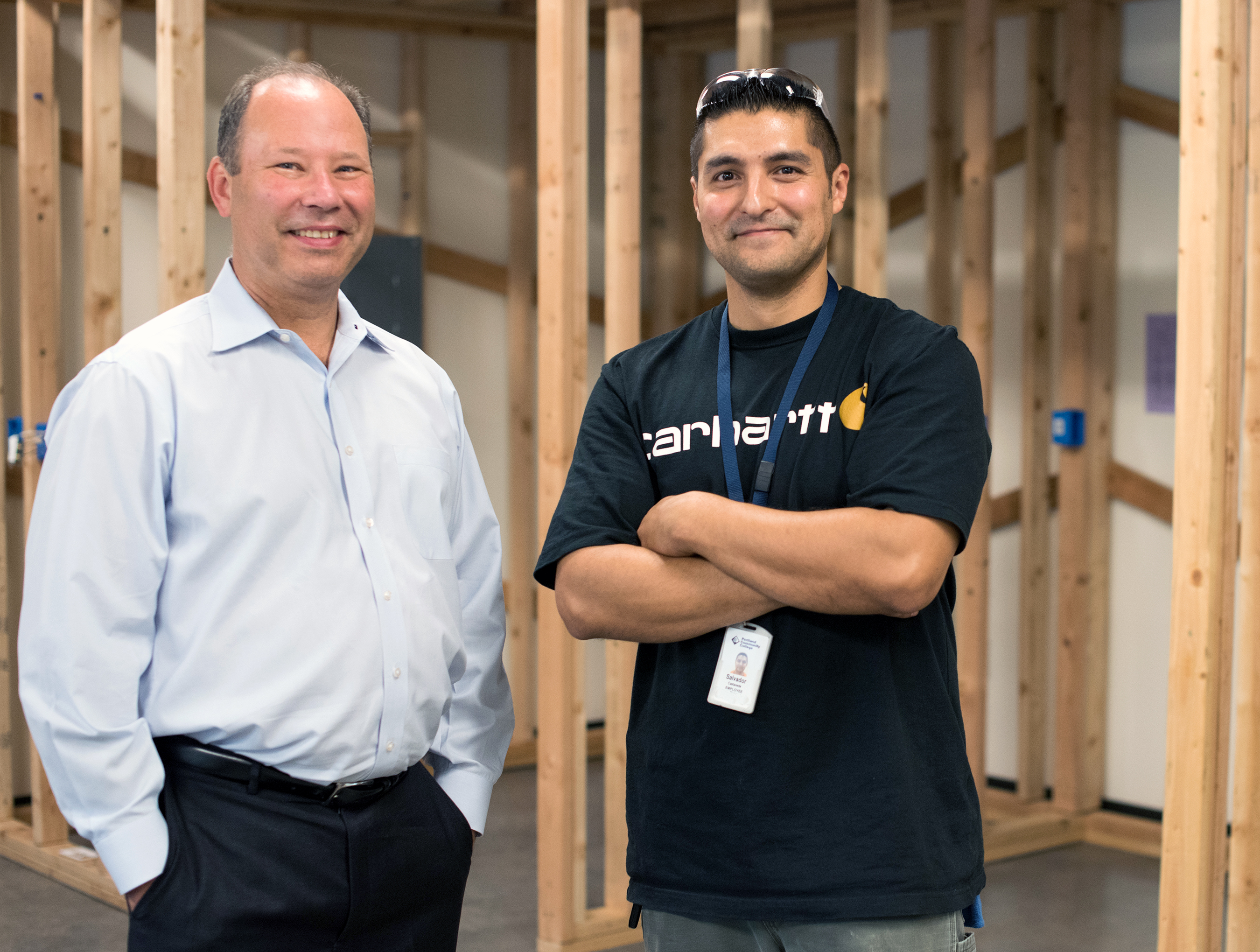 For PCC Board Trustee Ken Madden (left) and his family have supported the construction of the new Swan Island Trades Center and created an endowed scholarship for students in the Building Construction Technology Program.