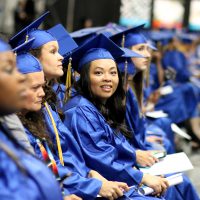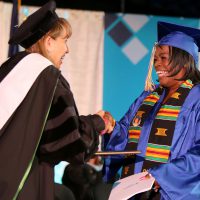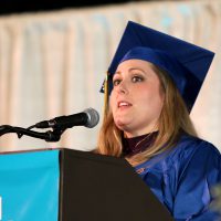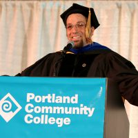 The program was festive and celebratory. It featured Rock Creek President Sandra Fowler-Hill as master of ceremonies with PCC Board Chair Deanna Palm and PCC Interim President Sylvia Kelley providing remarks. An inspiring rendition of the national anthem was performed by graduating student Colleen Kelly. And, Blake Hausman, who teaches composition, literature and creative writing at the Southeast Campus, served as the faculty speaker, while Paula Heine got the crowd energized with her story as student speaker.