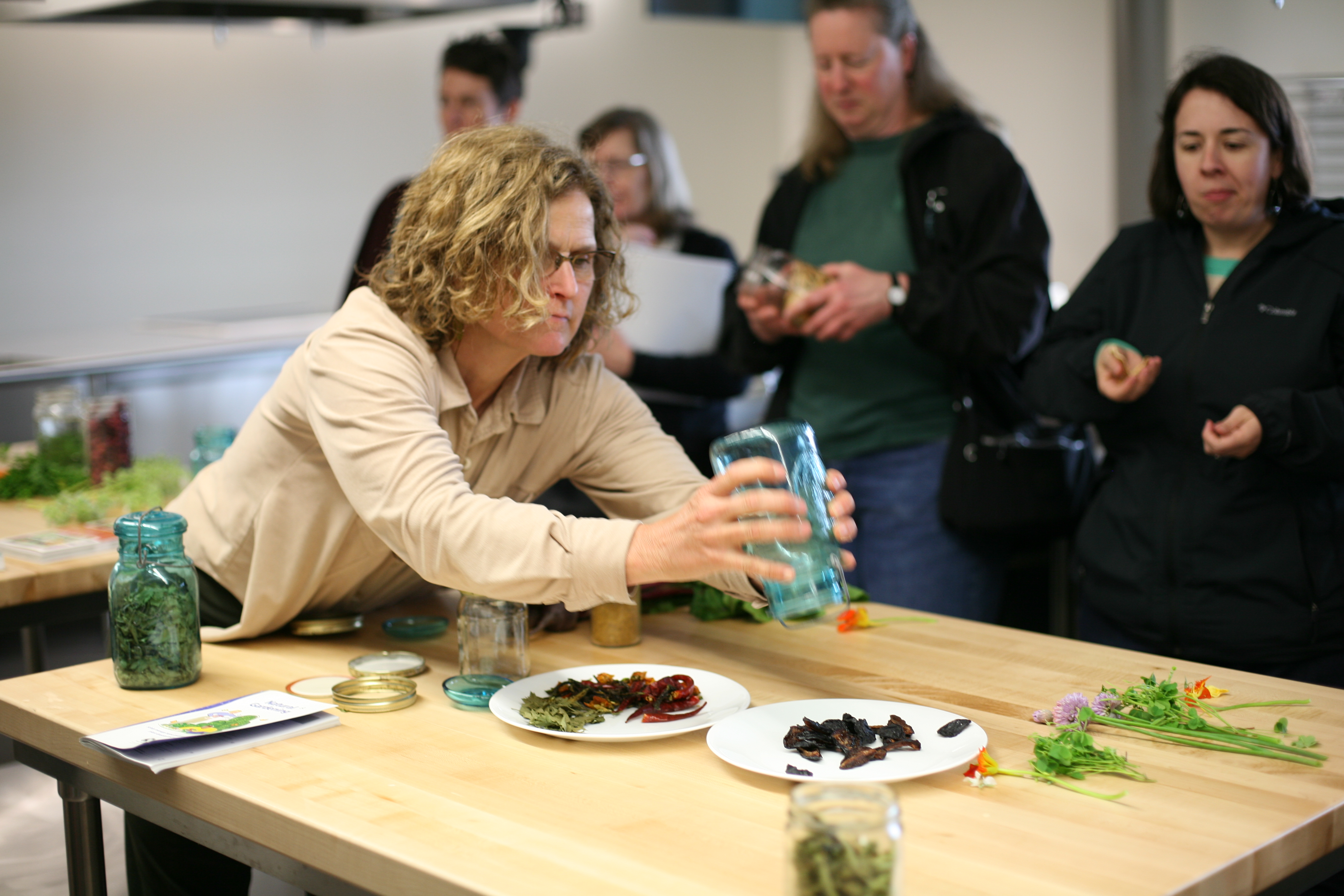 Elaine Cole, Rock Creek's Sustainability coordinator, was co-facilitator at the recent workshop held in the new Foods and Nutrition Lab, "Using Unusual Foods in the Kitchen." Here she offers several samples of foods dried in a home dehydrator.