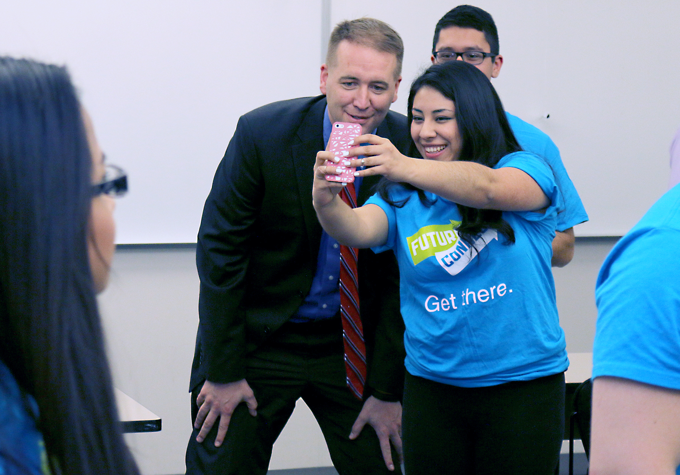 State Rep. Tobias Read poses with Future Connect students in 2015. He was critical in making statewide funding for this program possible.