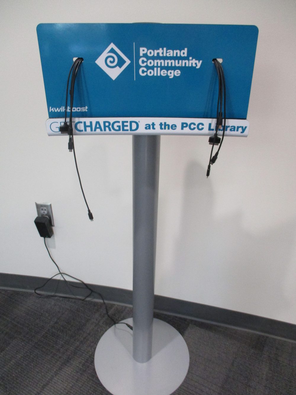 Almost every kind of laptop or mobile electronic device can be charged at Cascade Library's computer bars.