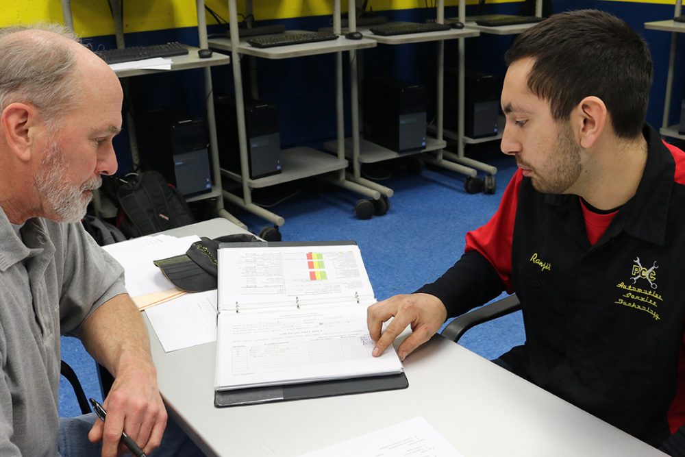 This media file is attached to: Local auto shop owners and staff review PCC auto tech student portfolios
