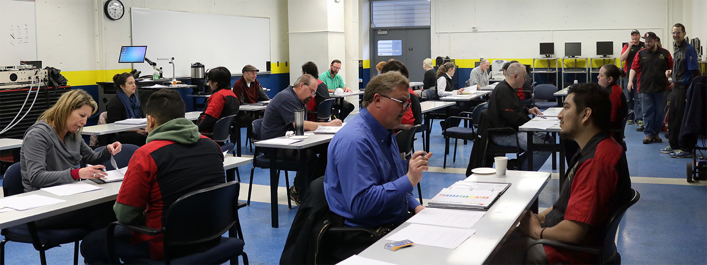 This media file is attached to: Local auto shop owners and staff review PCC auto tech student portfolios