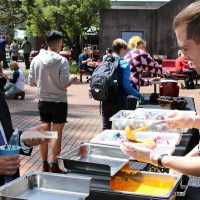 In the afternoon, Mitsui stopped by ASPCC’s Spring BBQ in the courtyard between the CC and HT buildings at the Sylvania Campus. The president not only chatted with students and listened to free music, but also enjoyed a $1 vegan lunch in support of student activities.