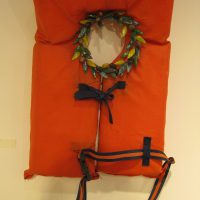Building Construction technology instructors Shannon Baird and Hilary Campbell shared third place for their collaborative piece, a life vest and a stylized wreath. They created the work in response to a trip to Turkey and the Greek Islands, where they volunteered at an art program for Syrian refugee children.