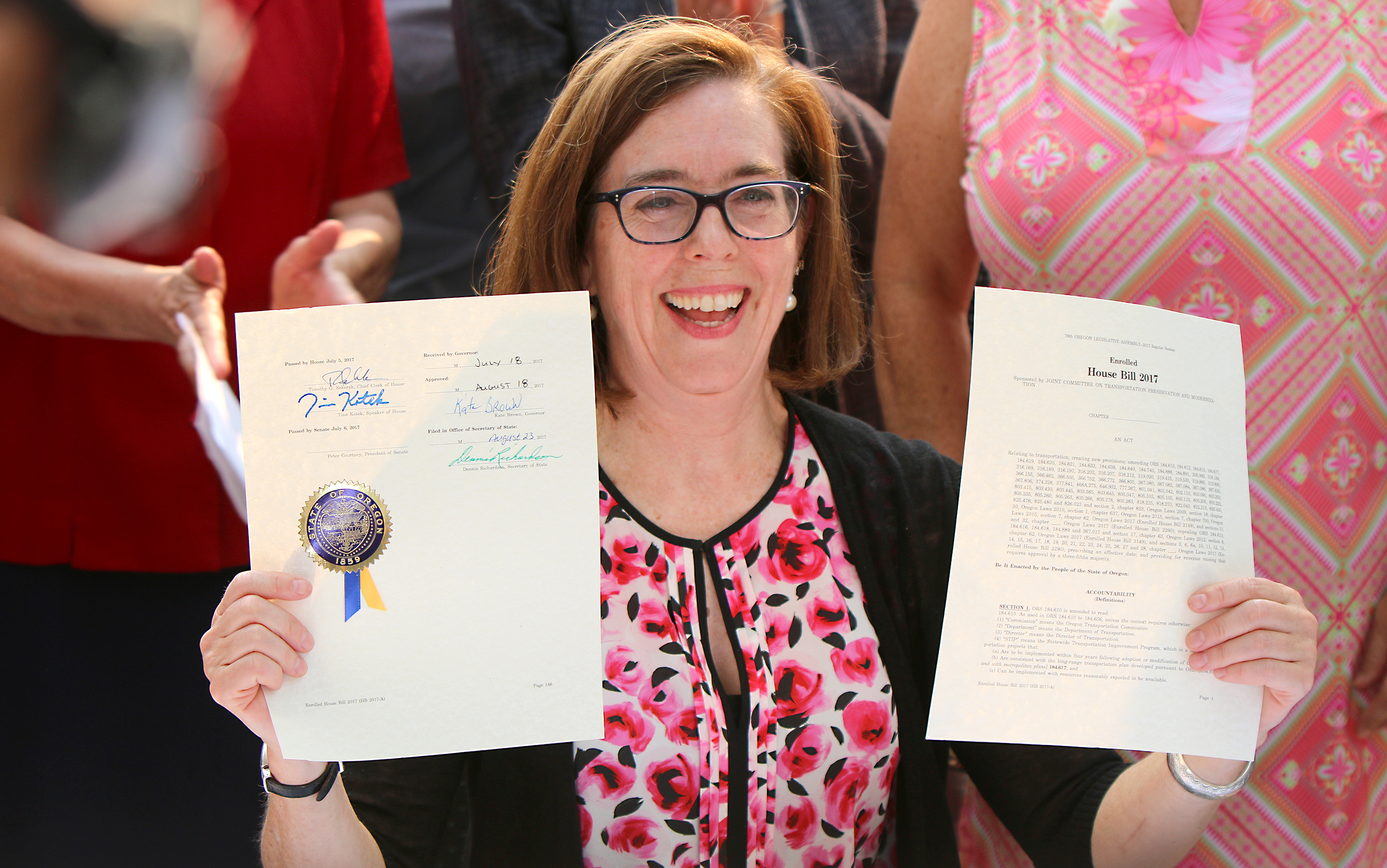 “Thank you to Portland Community College for your support and enabling us to be here today,” Gov. Brown said. “I’m so pleased to sign this transportation bill that will enable us to provide additional opportunities for Oregonians across the state and enhance opportunities for every single corner of Oregon. This has been a team effort. Not only will this package improve the safety and condition of our roads and bridges, it will support thousands of family wage jobs and help local business get their goods to market more efficiently.”