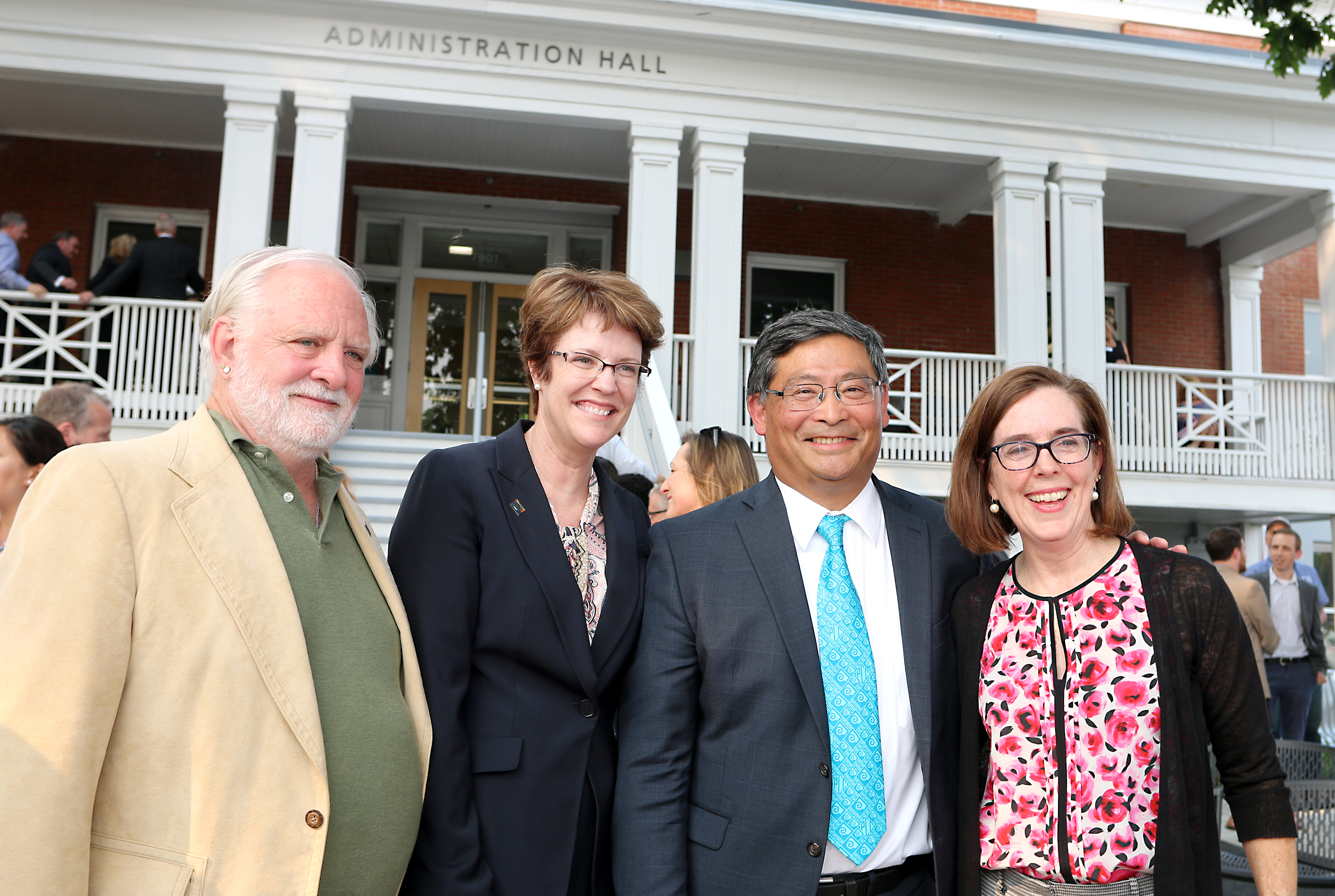 Gov. Kate Brown (far right) with, left to right, Board Director Michael Sonnleitner, Southeast President Jessica Howard and PCC President Mark Mitsui.