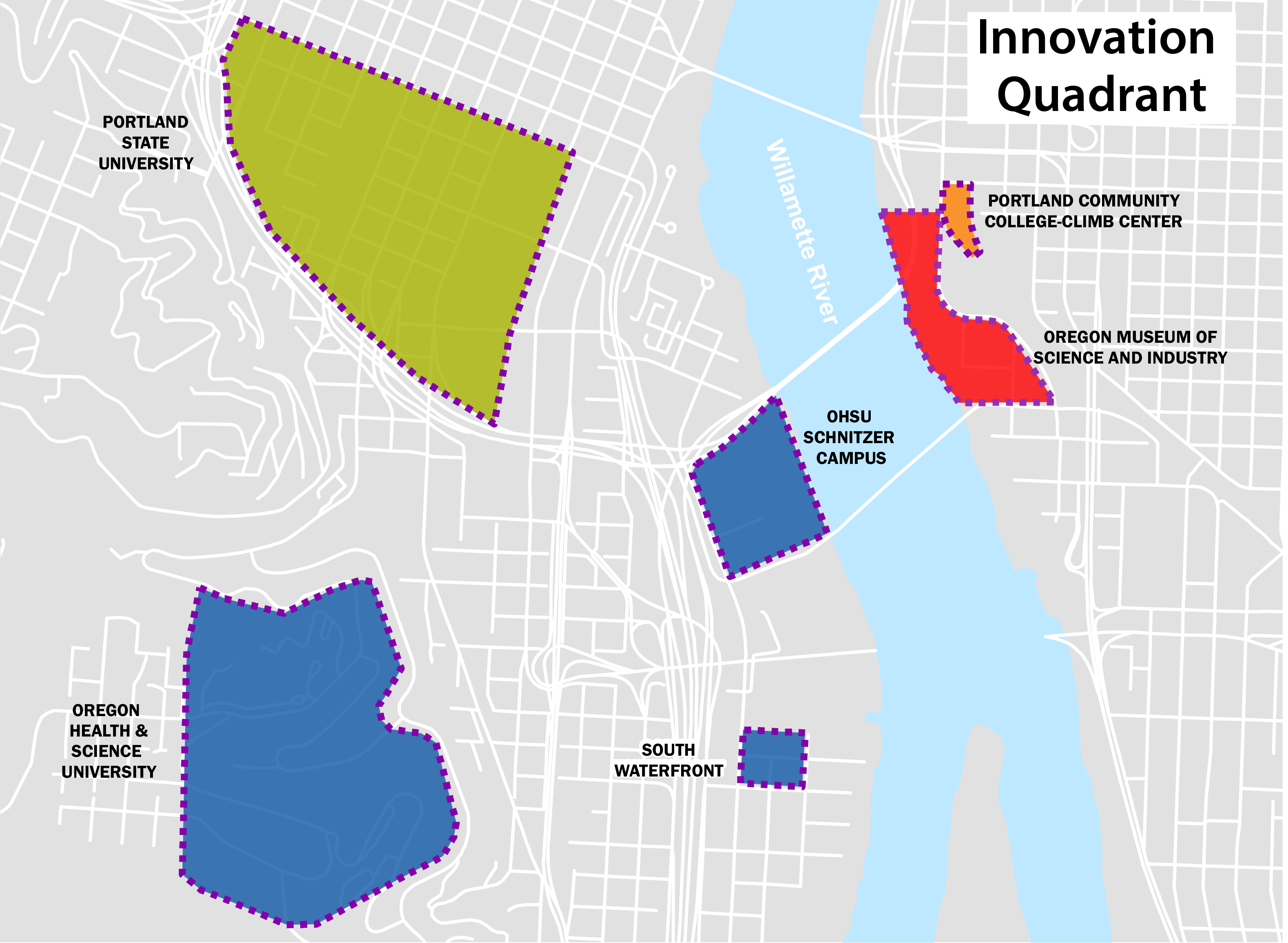 Such visioning also supports PCC’s decision to join the Innovation Quadrant, a collaboration of public and private sectors near OMSI and the South Waterfront campus of OHSU. Educational entities involved in healthcare are participating, helping to develop both sides of the Willamette River. OMSI is pledging to repurpose two existing industrial buildings (former power generation facilities) on its property to serve as incubators and labs for healthcare startups. PCC, meanwhile, seeks to develop space to foster innovation within training and patient care.