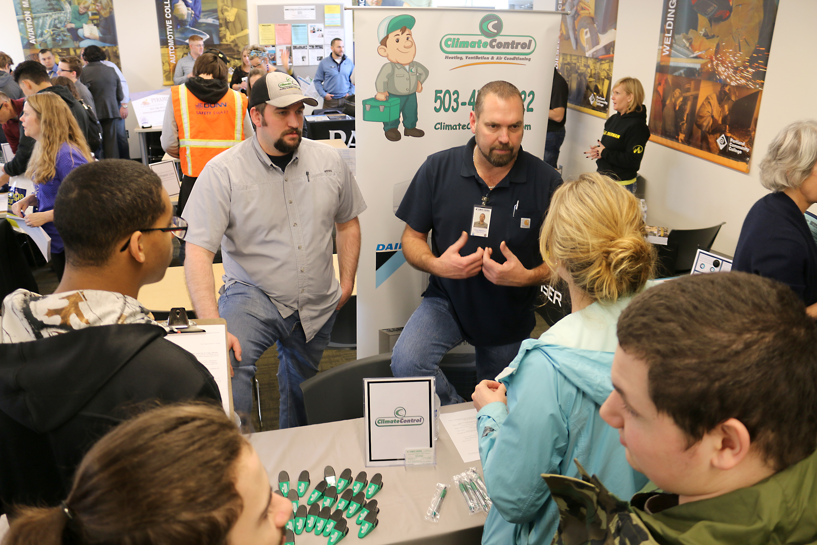 Deay explored the dozens of trades companies whose industries tie into classes that Career Pathways and the Swan Island Trades Center offer – HVAC, Welding, Machining, Facilities Maintenance and Construction. The fair was sponsored through a $100,000 Career Pathways’ JPMorgan Chase Foundation grant that was awarded to the PCC Foundation in 2016.