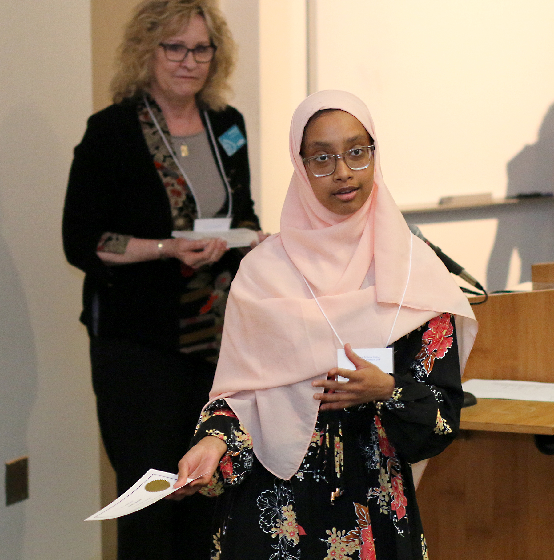 But the event’s pinnacle may have been best reflected in the simple words of student Amina Mohammed, a recipient of a Global Studies Focus Award, who told the packed auditorium, “I want to learn a lot more about the world.”