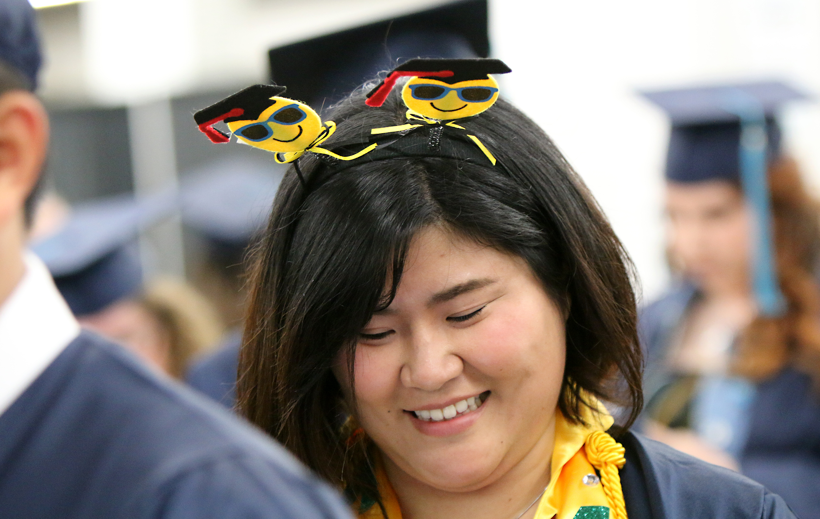 A graduate has some fun just before the ceremony starts.
