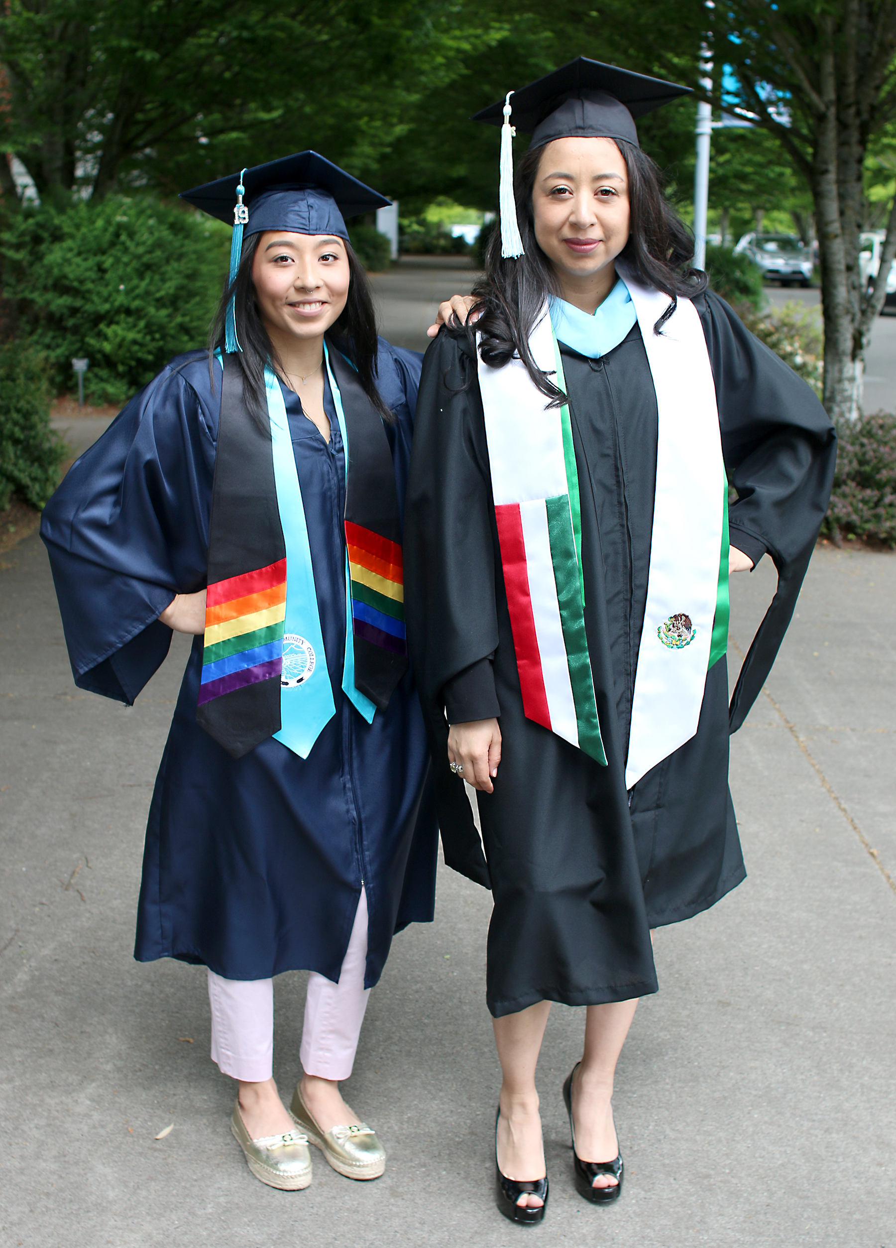 Veyda remembered that time well, too. She lived with her stepfather in Oregon while her mother was away. But the uncertainty of the immigration process for her mother, combined with the challenge of going to a new school and adjusting to adulthood, was a tough period in her life.Veyda and Margarita in cap and gowns.