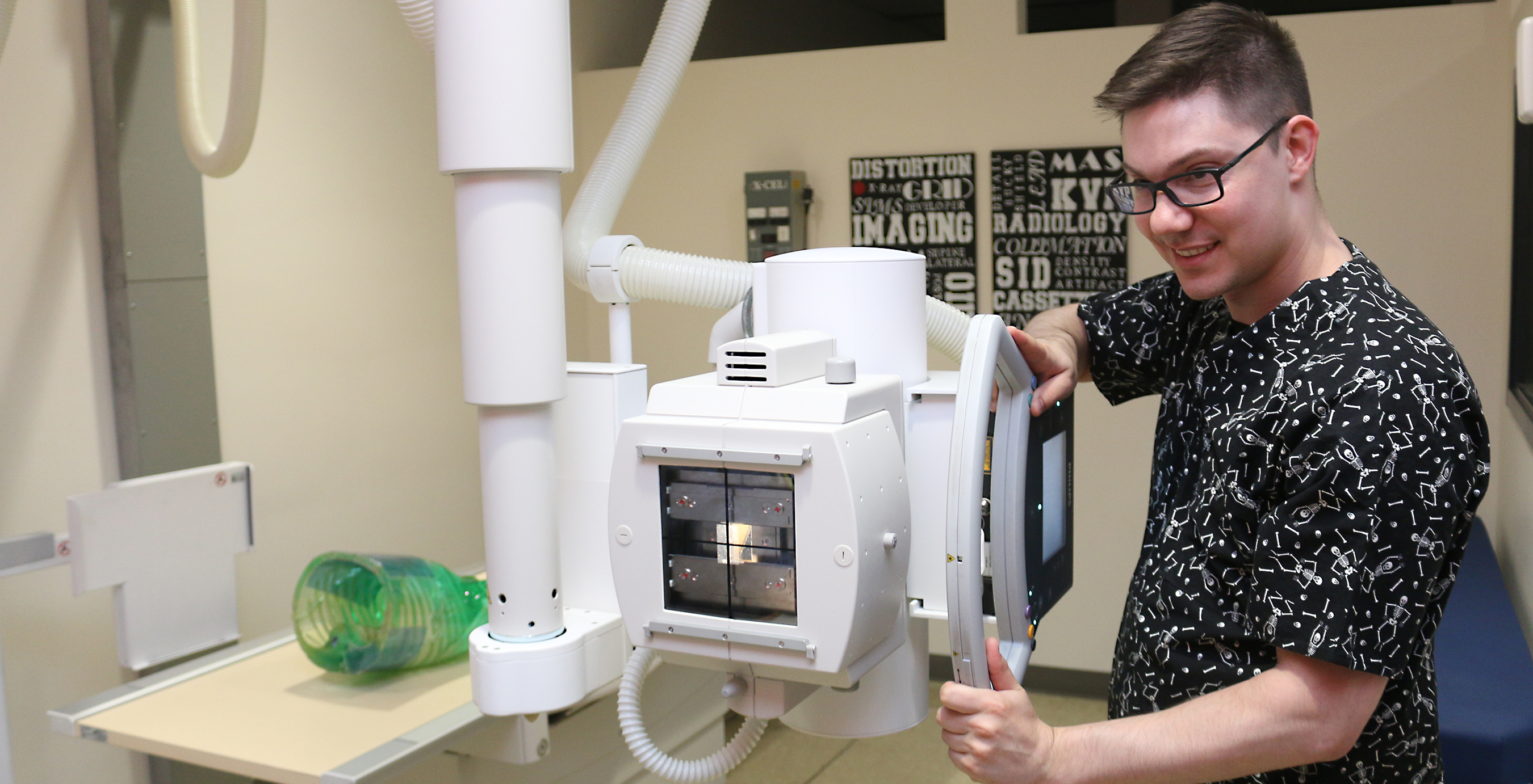 Jonah Scott using an x-ray machine.