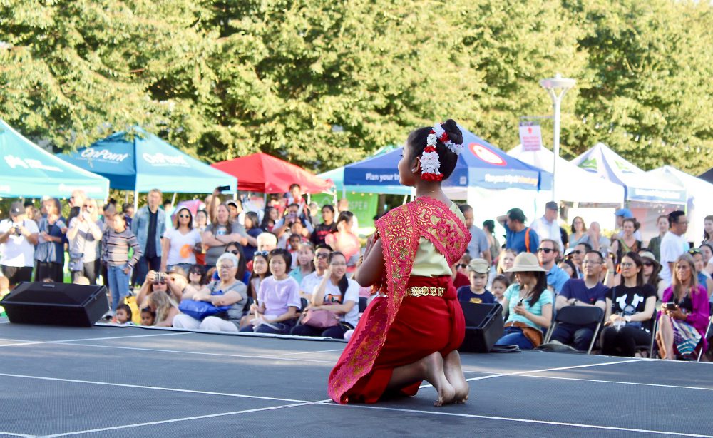 A Bharatanatyam dancer (Indian dance) at Jade International Market Night dazzles crowds at Southeast Campus.