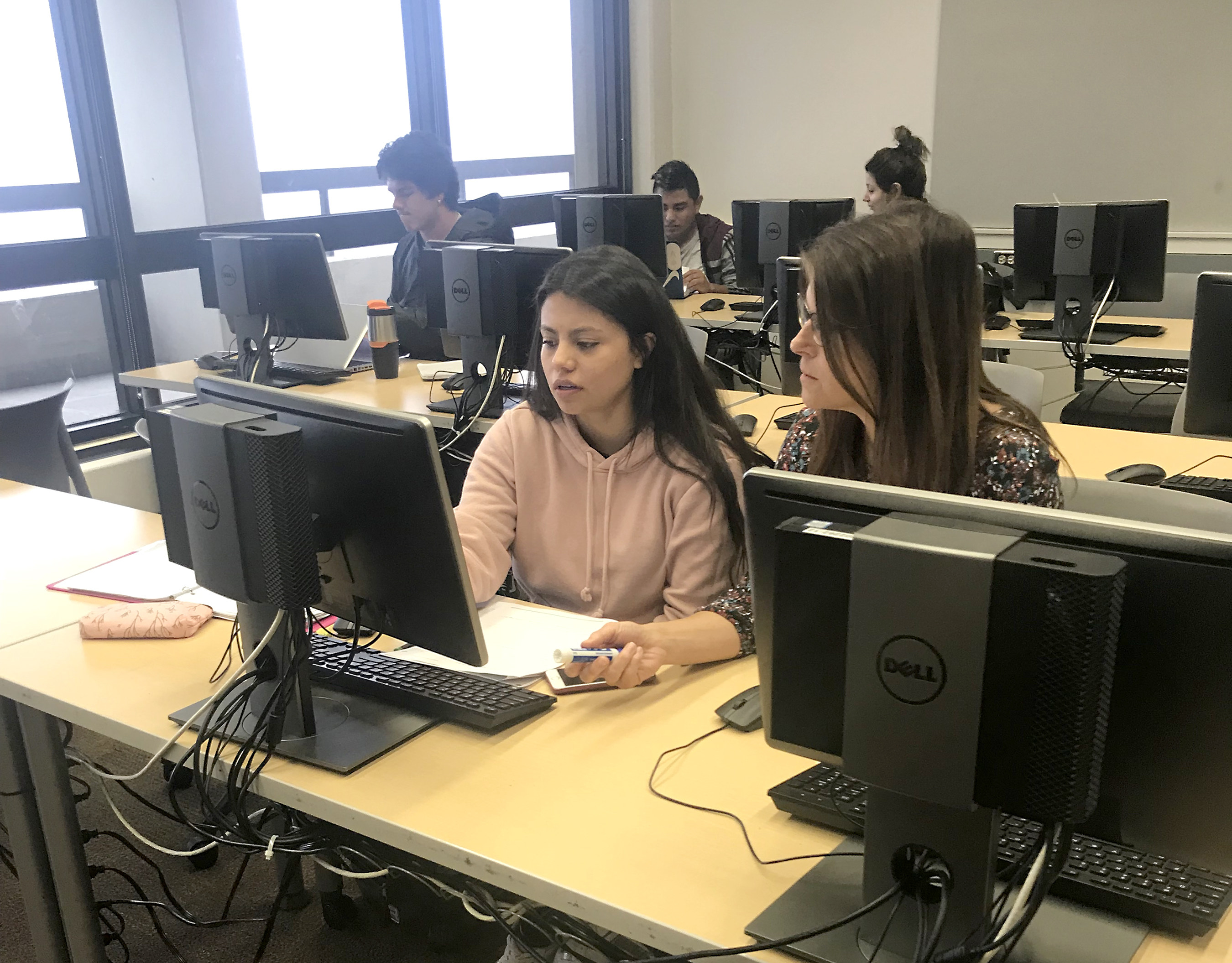 In the classroom, the instructor conducts activities and group breakouts that tackle the material so students can receive help and ask questions.